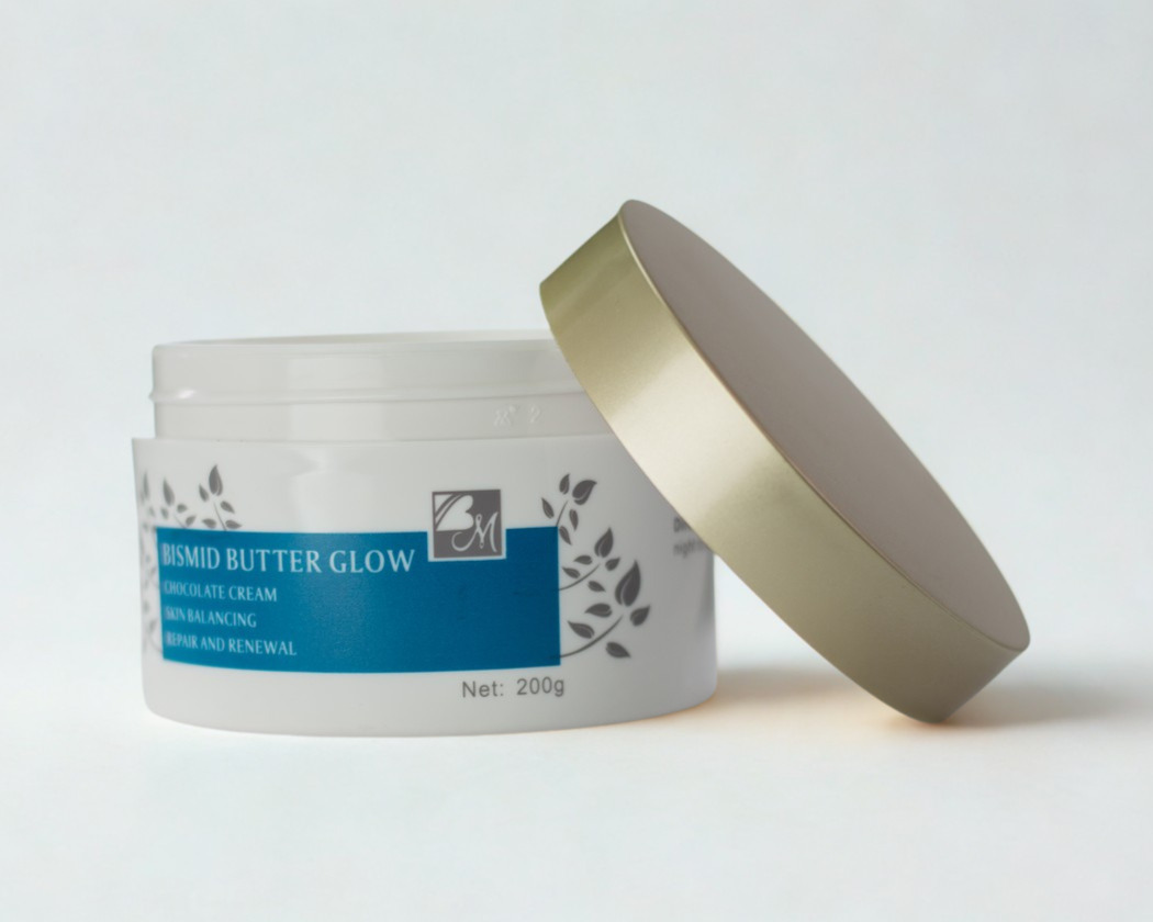 Indulge your skin with Bismid Butter Glow Chocolate Cream, a luxuriously rich formula designed to deeply nourish while enhancing your skin’s natural glow. With its smooth, buttery texture and indulgent chocolate-inspired feel, it melts effortlessly into the skin, leaving it soft, hydrated, and radiant.